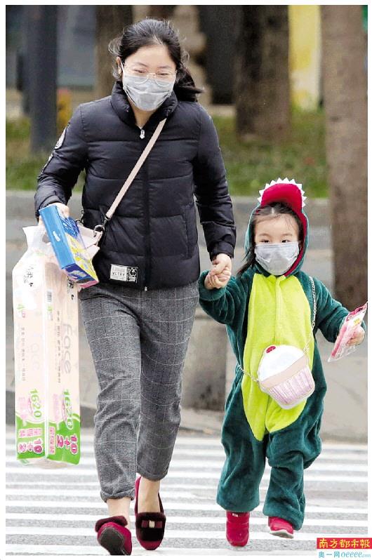 2月16日,深圳黄贝岭地铁站附近,小朋友穿绒毛卡通服上街。南都记者 刘有志 摄