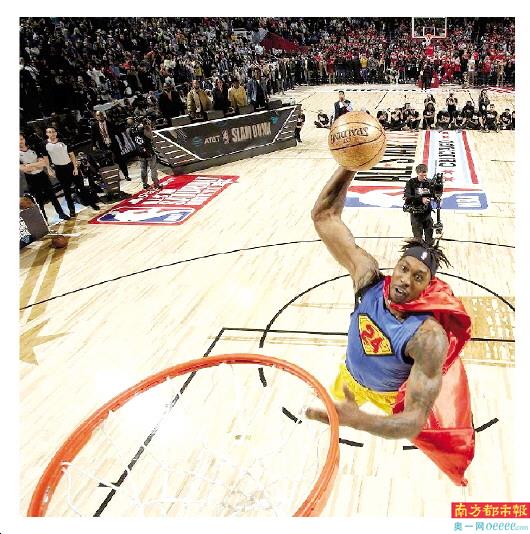 ↑霍华德重演了自己12年前的“超人飞扣”环节,但这次把胸口的超人S标识换成了科比的24号球衣号码。他本来是想邀请科比来为自己披上超人红披风的。