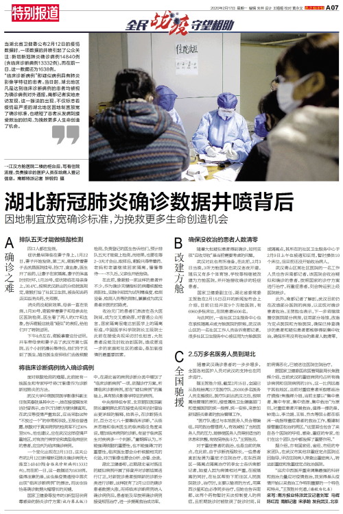 当湖北省卫健委公布2月12日的疫情数据时,一项数据的井喷引起了公众关注:新增新冠肺炎确诊病例14840例(含临床诊断病例13332例)。而在前一日,这一数据还为1638例。“临床诊断病例”即疑似病例具