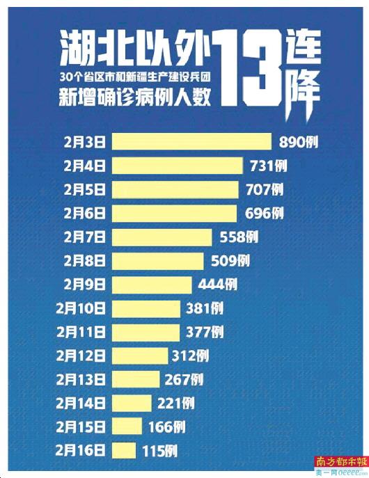 国家卫生健康委新闻发言人、宣传司副司长米锋介绍,除湖北外,全国新增确诊病例115例,新增疑似病例654例,新增死亡病例5例,重症病例减少29例。其中,新增确诊病例总数已连续13天下降,新增死亡病例数一直保持在较低水平。