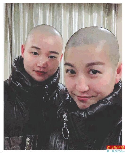 剃了光头的林金凤(右)和林锦芬(左)。 受访者供图
