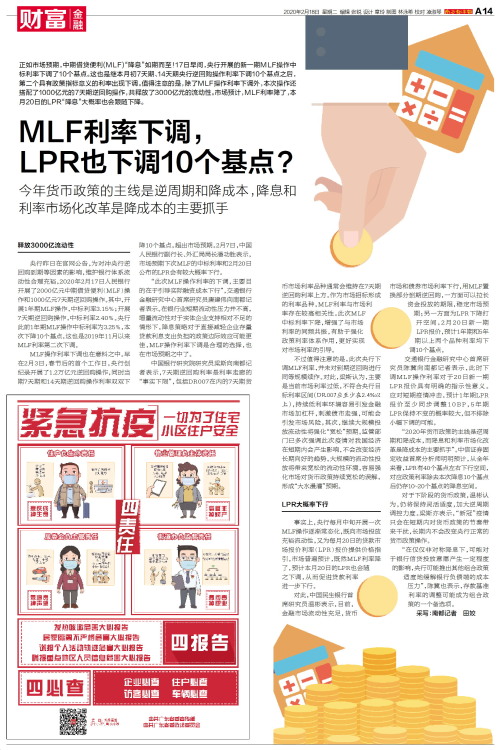 正如市场预期,中期借贷便利(MLF)“降息”如期而至!17日早间,央行开展的新一期MLF操作中标利率下调了10个基点。这也是继本月初7天期、14天期央行逆回购操作利率下调10个基点之后,第二个具有政策