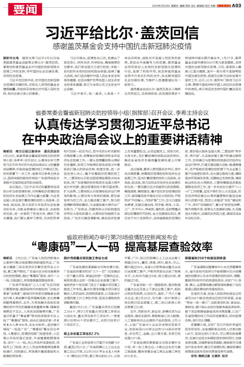 南都讯 南方日报记者徐林 通讯员岳宗 2月22日,省委常委会暨省新冠肺炎防控领导小组(指挥部)召开会议,认真传达学习贯彻习近平总书记在中央政治局会议上的重要讲话精神,听取我省疫情防控工作情况汇报,研究