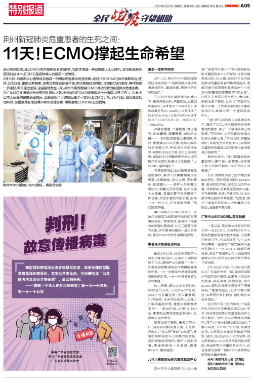 给心肺以时间,是ECMO(体外膜肺氧合)的使命。它的本质是一种改良的人工心肺机,在与新冠肺炎疫情的战斗中,ECMO是拯救病人的最后一道防线。2月11日,荆州市中心医院成功抢救一例确诊新冠肺炎危重患者。