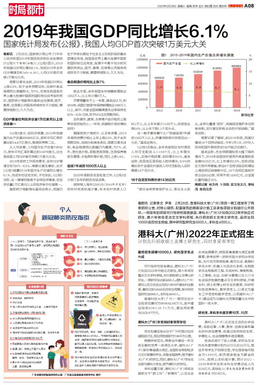 南都讯 2月28日,国家统计局公布了《中华人民共和国2019年国民经济和社会发展统计公报》(下简称《公报》)。《公报》显示,2019年我国GDP同比增长6.1%,完成2019年全年GDP增速目标(6%