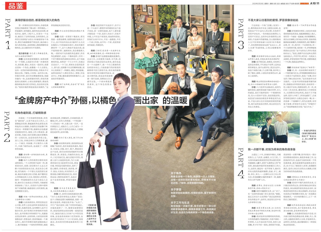 关于角色我要走进每一个角色,就像跟一个人交朋友,没有一定的时间积累和相处,你根本不可能走近他、了解他,这是需要时间的。关于罗晋他跟徐姑姑蛮像的,性格软软的,属于默默付出型。关于工作与生活我觉得我一点都