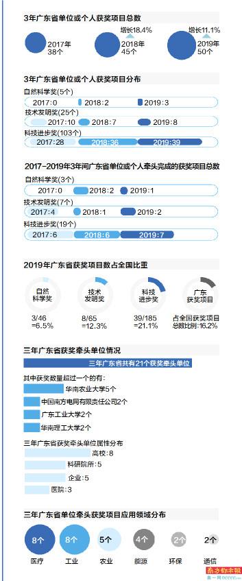 获奖总数连续3年增长、获奖项目占全国比例再创新高、“三大奖”获奖数量均实现增长。2020年开年,广东在国家科学技术奖励大会上交出了一份靓丽的成绩单,为2020年科创工作开了好头。当前,广东正加速建设科技创新强省和粤港澳大湾区国际科技创新中心,为此,南都科创记者通过盘点三年来广东在国家科技奖“三大奖”(自然科学奖、技术发明奖和科技进步奖)的获奖情况,找出广东科技创新优势成果与提升空间。