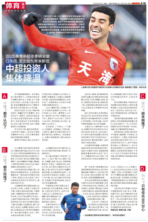 2月28日24点,2020赛季中超冬季转会窗口关闭。统计数据显示,中超冬季转会窗口总转会支出仅仅4111万欧元,创造了九年来的新低。横向对比,去年冬窗中超的投入2.18亿欧元还是全球第一,今年已经降至