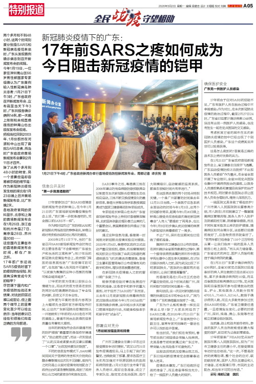 两个多月和不到48小时,这两个时间刻度分别是SARS和新冠病毒疫情来临时,广东从发现首例确诊病患到召开新闻发布会的间隔。今年1月19日,一位家住深圳南山区66岁男性被国家专家组确认为广东首例输入性新冠