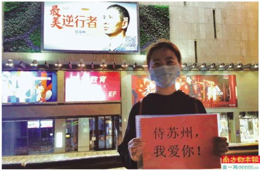 在驰援湖北的医疗队伍中,不乏医院双职工家庭。侍苏州是深圳驰援湖北武汉第一批医疗队中的一员,送走他之后,妻子丁薇薇留在深圳奋战。3月2日晚,在知道“最美逆行者”的屏幕亮起后,丁薇薇第一时间赶到中航天桥上,站在位于深南大道世纪汇商场的外墙屏幕前,手持“侍苏州,我爱你!”的卡片为老公加油。 南都记者 张馨怡 摄