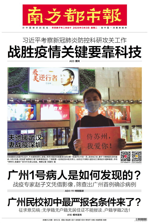 在驰援湖北的医疗队伍中,不乏医院双职工家庭。侍苏州是深圳驰援湖北武汉第一批医疗队中的一员,送走他之后,妻子丁薇薇留在深圳奋战。3月2日晚,在知道“最美逆行者”的屏幕亮起后,丁薇薇第一时间赶到中航天桥上