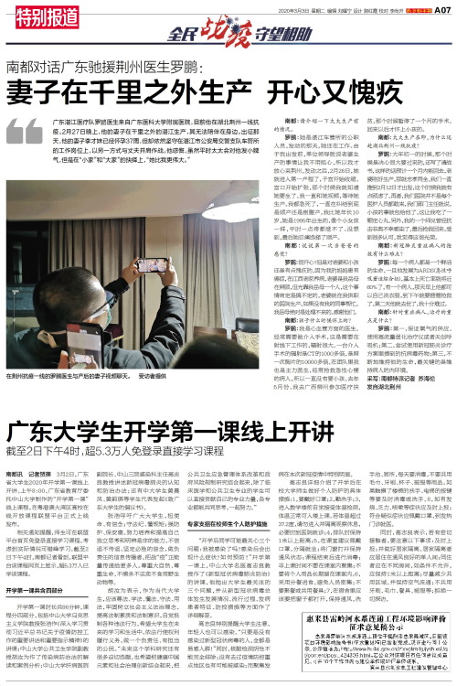 南都讯 记者贺蓓 3月2日,广东省大学生2020年开学第一课线上开讲。上午8:00,广东省教育厅委托中山大学制作的“开学第一课”线上课程,在粤港澳大湾区高校在线开放课程联盟平台正式上线发布。相关通知提