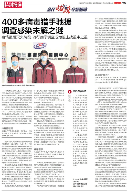 “张某某是1月23日,最后一个进到这所看守所,接着2月10日,他就离开了。2月20日,丁某第一个开始发烧发病。”“那看守所这条线就清楚了。”3月4日一早,武汉蔡甸区疾病预防控制中心,疾控专家福尔摩斯“