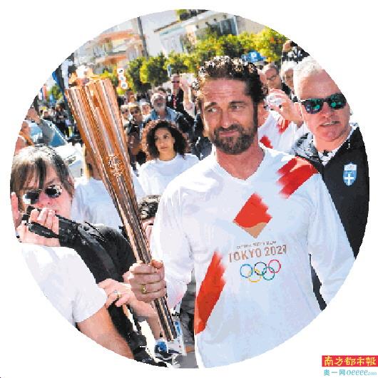 3月13日,演员杰拉德·巴特勒在希腊城镇斯巴达传递火炬时吸引了大批群众围观。 新华社发