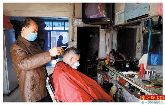 3月17日,三义老街的一个老字号理发店开始营业,剪发依然是几十年不变的老价格,10元一位。