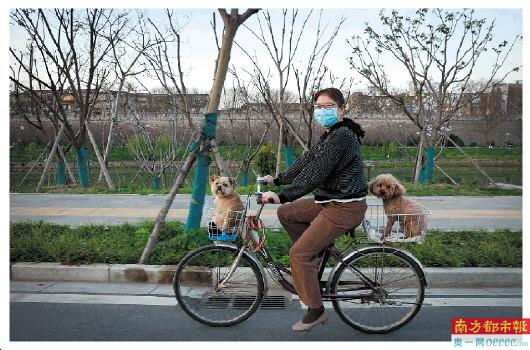 3月17日,市民带两只小狗外出透气,她透露已在家里呆了50多天。