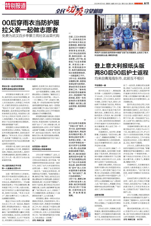00后穿雨衣当防护服 拉父亲一起做志愿者