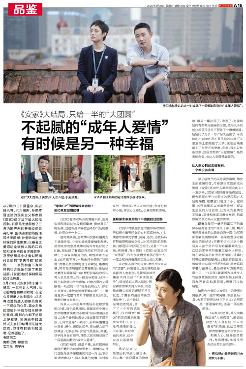 3月20日,《安家》终于落下帷幕,一系列让人气愤、揪心的角色和案例收尾,在这么多折磨人的剧情中,总该有点温情感人的东西安抚一下观众的心灵,男女主角的感情升华成为观众期待的焦点。编剧六六却不给观众多发糖,填满剧中的遗憾。《安家》的结局无法皆大欢喜,但该有的锐利和温暖,它都留住了。