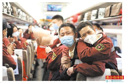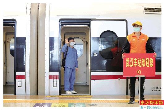 广东援助湖北医疗队1093名队员陆续踏上返粤列车。