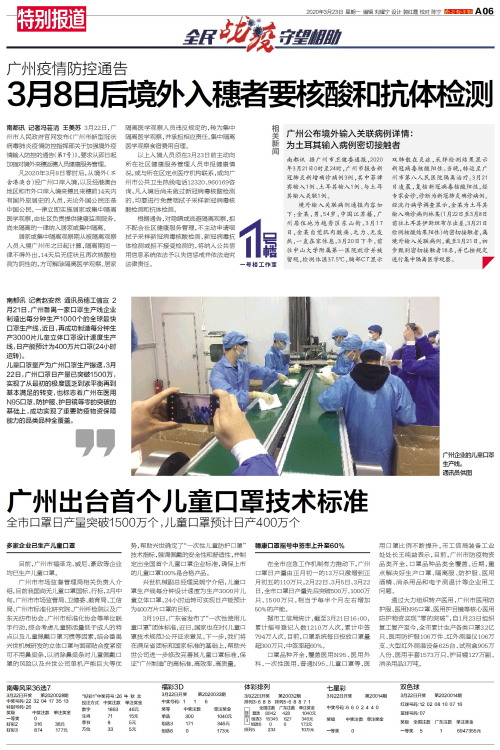 南都讯 记者赵安然 通讯员穗工信宣 2月21日,广州番禺一家口罩生产线企业制造出每分钟生产1000个的全球最快口罩生产线,近日,再成功制造每分钟生产3000片儿童立体口罩设计速度生产线,日产能预计为4