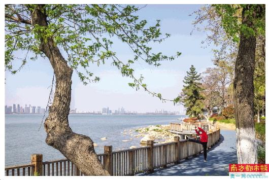 3月18日,天气晴好,东湖边上锻炼的武汉人。