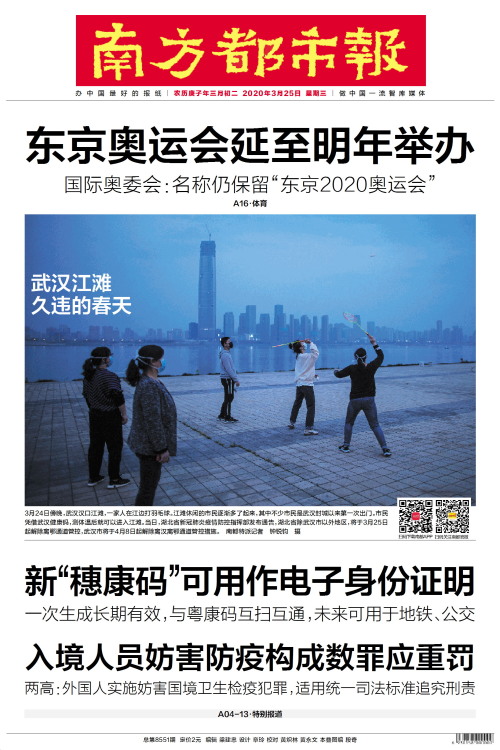 3月24日傍晚,武汉汉口江滩,一家人在江边打羽毛球。江滩休闲的市民逐渐多了起来,其中不少市民是武汉封城以来第一次出门。市民凭借武汉健康码,测体温后就可以进入江滩。当日,湖北省新冠肺炎疫情防控指挥部发布