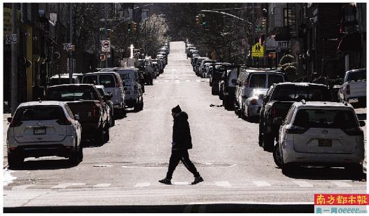 3月26日,在美国纽约布鲁克林,一名男子走过一条空旷的马路。新华社发