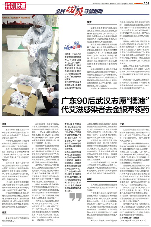 广东90后武汉志愿“摆渡” 代艾滋感染者去金银潭领药