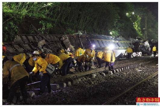 3月30日,救援人员在T179次列车脱轨事故现场救援。