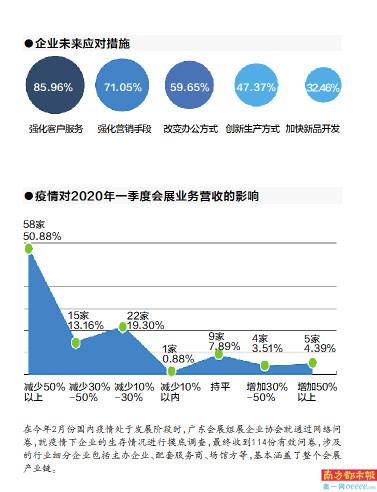 上述调查还显示,会展企业的经营业绩也因此受损,有超过一半的受访企业一季度会展业务减少50%以上,另有超过六成的受访企业上半年会展业务减少超过30%。