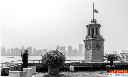 4月4日,全国举行哀悼活动,武汉江汉关大楼下半旗志哀。