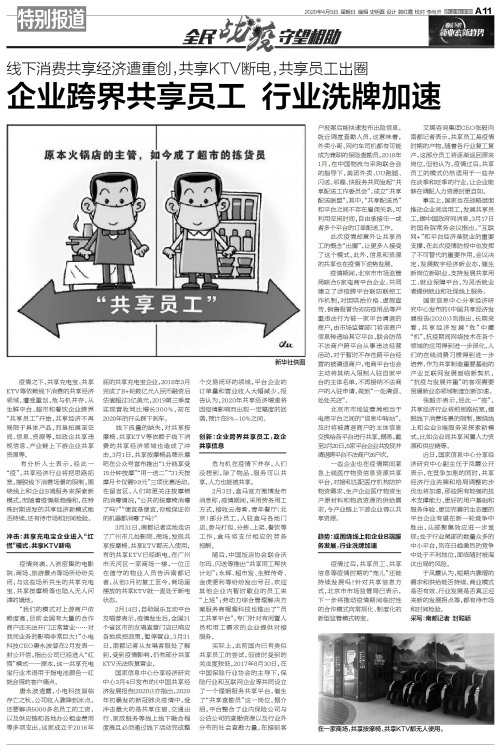 疫情之下,共享充电宝、共享KTV等依赖线下消费的共享经济领域,遭受重创。危与机并存。从生鲜平台、超市和餐饮企业跨界“共享员工”开始,共享经济不再局限于具体产品,而是拓展至空间、信息、资源等,如政企共享