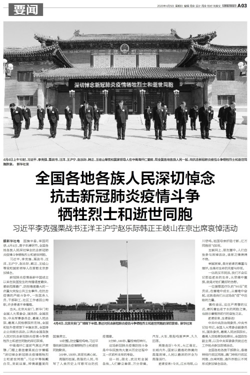 全国各地各族人民深切悼念抗击新冠肺炎疫情斗争牺牲烈士和逝世同胞