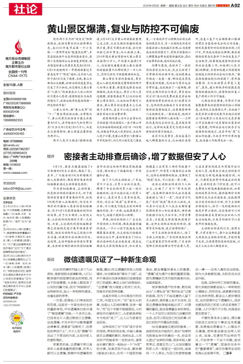 短评4月5日,国家卫建委通报了4日新增的5例本土病例,都在广东。其中,广州报告的3例为新增境外输入关联病例,都是确诊患者的密切接触者通过主动排查发现的。作为密切接触者,主动排查,就是配合防疫的最好