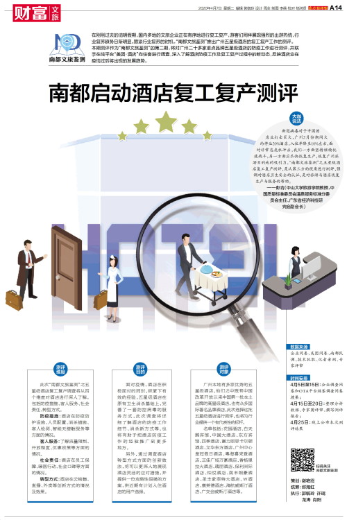 在刚刚过去的清明假期,国内多地的文旅企业正在有序地进行复工复产,游客们同样展现强烈的出游热情,行业复苏趋势日渐明显。跟紧行业复苏的时机,“南都文旅鉴测”推出广州五星级酒店的复工复产工作的测评。本期测评
