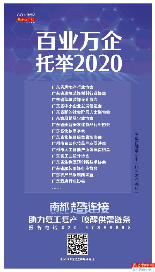 为聚合行业、企业力量,促进产业链升级优化,以期带动激发市场需求,促进行业健康发展,南都特此发出倡议,希望百业万企与南都联手,共同参与“托举2020”系列活动。