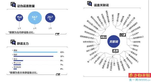 “傍疫情”的谣言生长极快。或许不少人有类似体验:一边说服家里长辈别出门、戴口罩、勤洗手,一边还要劝阻不信谣、不传谣,可谓操碎了心,说干了嘴。南都大数据研究院对几大互联网辟谣平台的内容进行梳理并去重,发现日均67条信息被权威机构证伪。其中,1月、2月、3月的日均占比分别是15.6%、54.7%和29.7%。