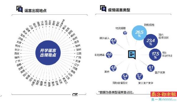 疫情之初担心封城,疫情后半程关心开学,谣言也把握这公众心理翻着花样。南都大数据研究院梳理发现,疫情以来至少有30座城市被传要封城,1月20至1月29日是封城谣言高发期。当宣布武汉封城后,相关谣言变多,北京、广州、深圳、杭州和南京等13城在此时间段内传言要封城。到2月,关于各地学校开学的谣言开始出现,3月初是“开学”高峰期,有几十个城市被传出要在3月2日开学,光北京就被“开学”了两次。