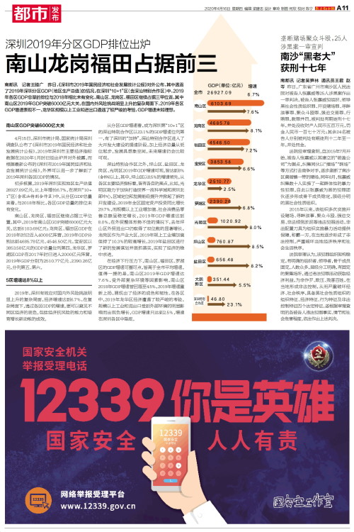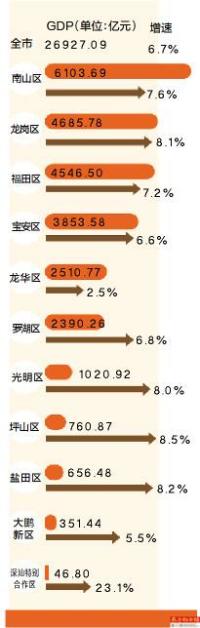南都讯 记者王睦广 昨日,《深圳市2019年国民经济和社会发展统计公报》对外公布,其中透露了2019年深圳分区GDP(地区生产总值)的情况。在深圳“10+1”区(含深汕特别合作区)中,2019年各区G