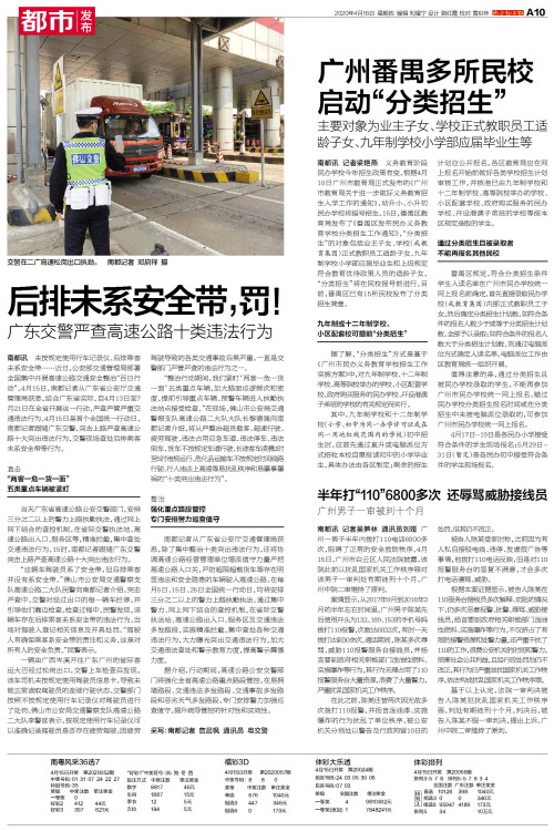 南都讯 未按规定使用行车记录仪、后排乘客未系安全带……近日,公安部交通管理局部署全国集中开展高速公路交通安全整治“百日行动”。4月15日,南都记者从广东省公安厅交通管理局获悉,结合广东省实际,自4月1