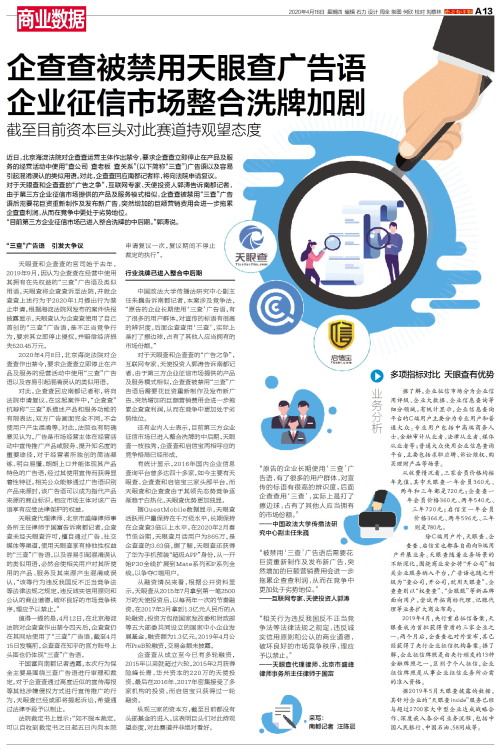 企查查被禁用天眼查广告语 企业征信市场整合洗牌加剧
