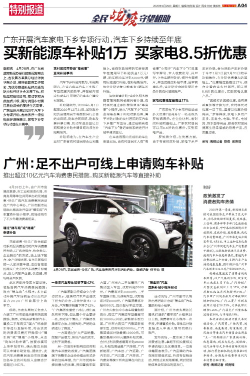 南都讯 4月28日,在广东省政府新闻办举行的新闻发布会上,省发展改革委总经济师黄华东介绍,按照省政府工作部署,为统筹推进新冠肺炎疫情防控和经济社会发展工作,积极应对疫情影响,推动农村消费提质升级,更好