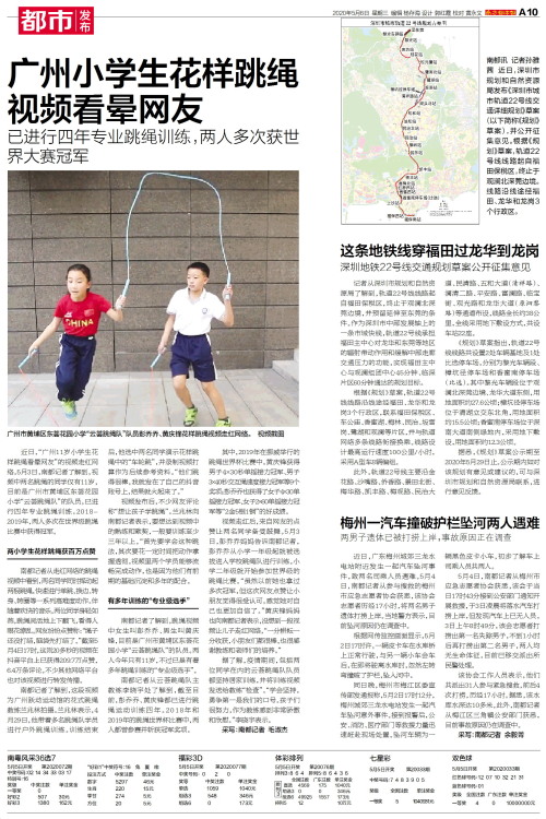 近日,“广州11岁小学生花样跳绳看晕网友”的视频走红网络。5月3日,南都记者了解到,视频中两名跳绳的同学仅有11岁,目前是广州市黄埔区东荟花园小学“云荟跳绳队”的队员,已进行四年专业跳绳训练。2018