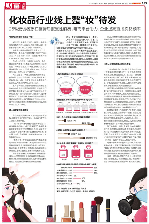 近日,不少化妆品企业发布一季报,其中鲜有业绩正增长。可以看出,化妆品行业也受到疫情冲击,据国家统计局2020年一季度统计数据显示,全国化妆品零售额与去年同比下降13.2%。而据南都热点站站队最新开展的