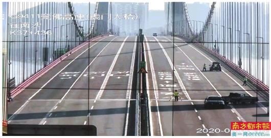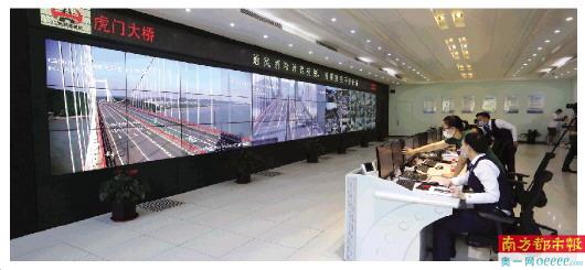 虎门大桥管理中心实时监控画面。 南都记者 冯宙锋 摄