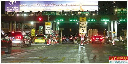 ↑5月6日凌晨前,广州北环高速,收费站一切畅顺。 南都记者 邹卫 摄