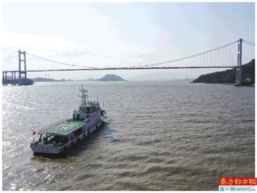 昨日,海事部门的船在虎门大桥附近水域巡逻。 南都记者 陈辉 摄