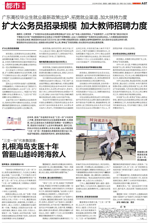 近年来,随着广东省高校毕业生“三支一扶”计划的深入开展,越来越多高校毕业生选择服务基层、扎根基层。他们正逐渐成长为基层组织发展的一支重要生力军,用实际行动促进了山区农村基础教育、医疗卫生、农林水利和社