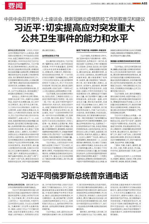 习近平:切实提高应对突发重大公共卫生事件的能力和水平