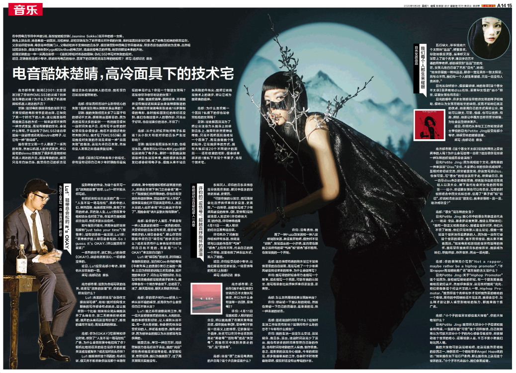 在中国电音节目中冲进5强,新加坡姑娘楚晴(Jasmine Sokko)是其中的唯一女将。舞台上镜头前,她总戴着一副面具,冷酷神秘,起初楚晴是为了避开观众对外貌的纠缠,孰料这面具更是打眼,成了她电音酷妹